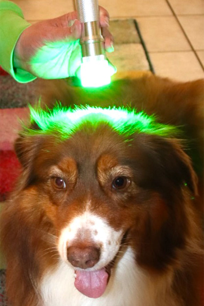 Die Low-Level-Lasertherapie (LLLT) oder auch Photobiomodulation, bezeichnet die Anwendung von frequenzmoduliertem, gebündeltem Licht mit geringer Energieintensität. Die mit diesen Geräten ausgesandten Lichtstrahlen wirken auf zellulärer Ebene, um gestörte Stoffwechselprozesse zur Regeneration anzuregen und ein Gleichgewicht auf Zellebene zu erreichen. Die Lichtenergie dringt in die Zellen ein und stimuliert dort biochemische Prozesse, insbesondere die ATP-Produktion in den Mitochondrien. Dies unterstützt die Regeneration, verbessert die Durchblutung und reduziert Schmerzen. LLLT kann bei Hunden, Katzen, Pferden und anderen Tieren z. B. bei Arthrose, Verletzungen, postoperativ, bei Hautproblemen oder auch bei Ängsten und psychischen Problemen eingesetzt werden. Die Behandlung ist schmerzfrei und wird meist gut toleriert.